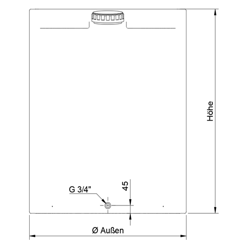 - Eingeformte Gewindemuffe 3/4", nicht aufgebohrt, inkl. Stopfen