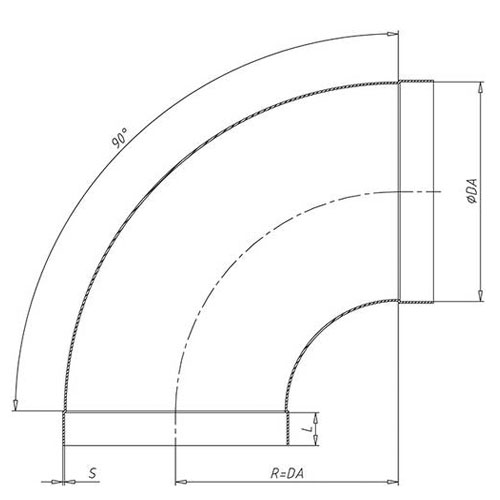 - Muffeninnendurchmesser in Anlehnung an die DIN 8077, R=DA
