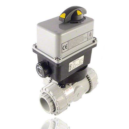 | 3/2-Wege-Kugelhahn aus PVC-C mit elektrischem Stellantrieb mit Endlagenrückmeldern, Handnotbetätigung und optischer Stellungsanzeige Kugel mit L-Bohrung Standardkugelstellung: 1 Stellantriebsdaten: Standard 90-240V / 50-60Hz (AC) ohne Aufpreis 24V AC/DC Andere Spannungen auf Anfrage ***DN50 = PN16 auf Anfrage Anschluss: Klebemuffe Dichtung: PTFE/EPDM |