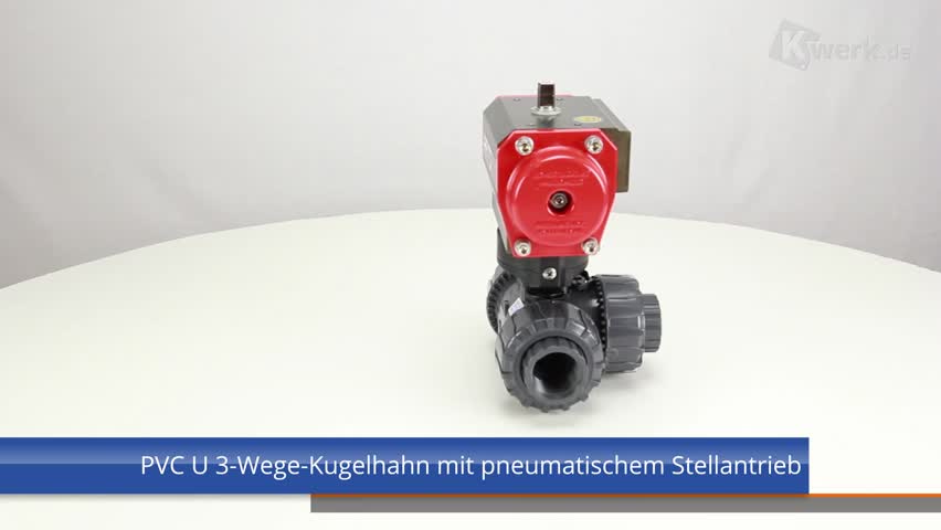 3/2-Wege-Kugelhahn aus PVC-U mit pneumatischem Stellantrieb
