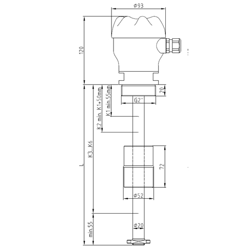 | Magnetschwimmerschalter Typ MNR7 / K8 - 2 Kontakte - PBT Anschlusskopf - Werkstoff PP - Prozessanschluss G2 - Schwimmertyp PP Schwimmer d 52 mm - Schwimmeranzahl 2 Stück - ohne Stellring - Länge 1000 mm |